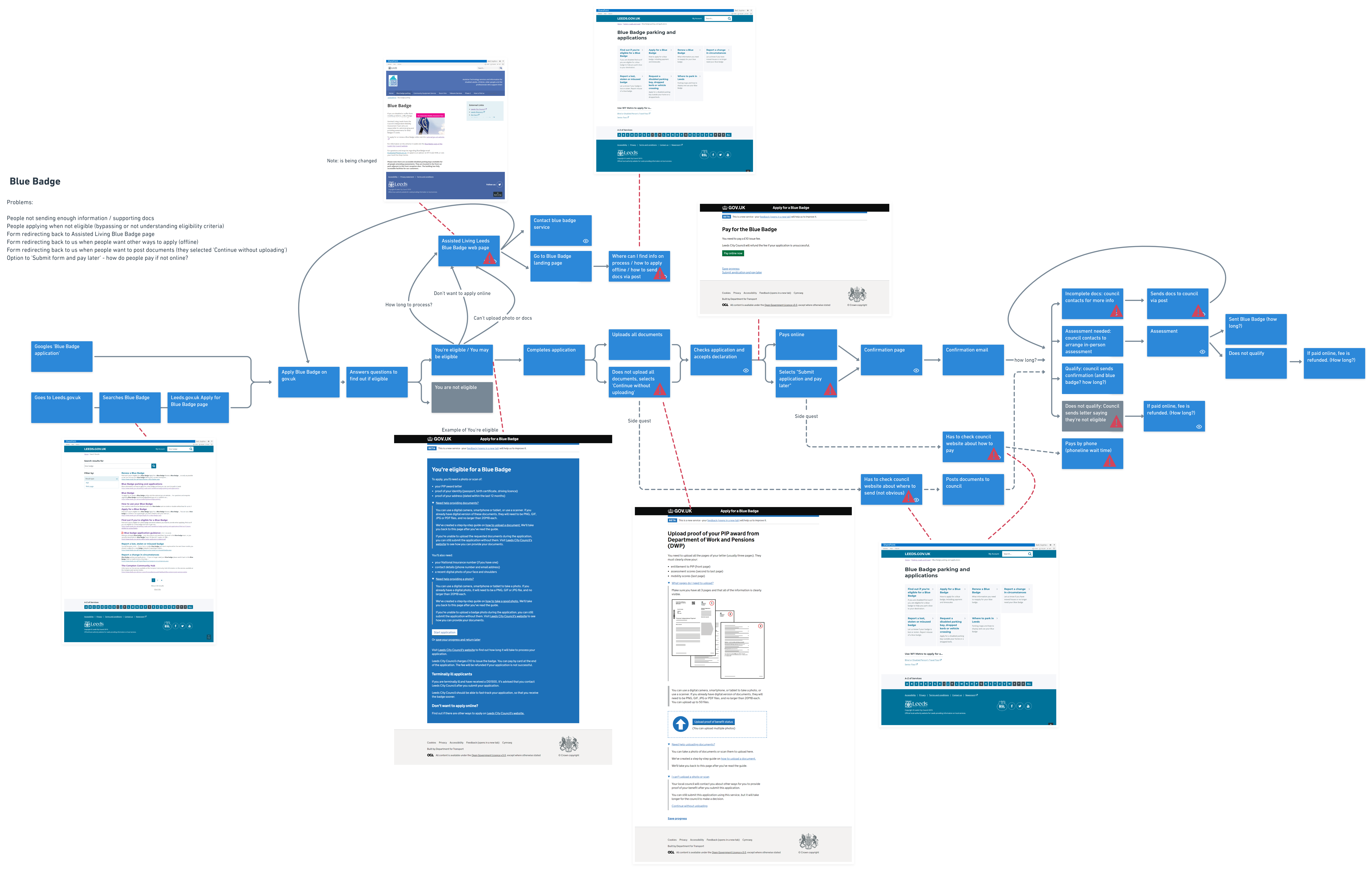 To understand the full extent of the problems, I completed a short discovery phase creating journey maps, doing desk research, and consulting the Blue Badge team.